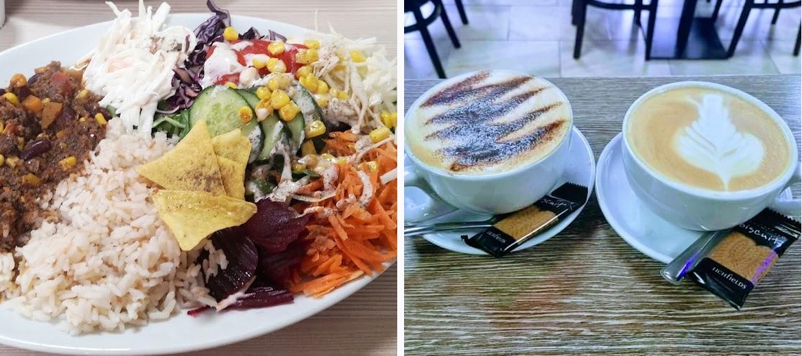 The really nice cafe. The food is very tasty and the portions are huge. Also good coffee. Convenient parking is 2 minutes walk away.